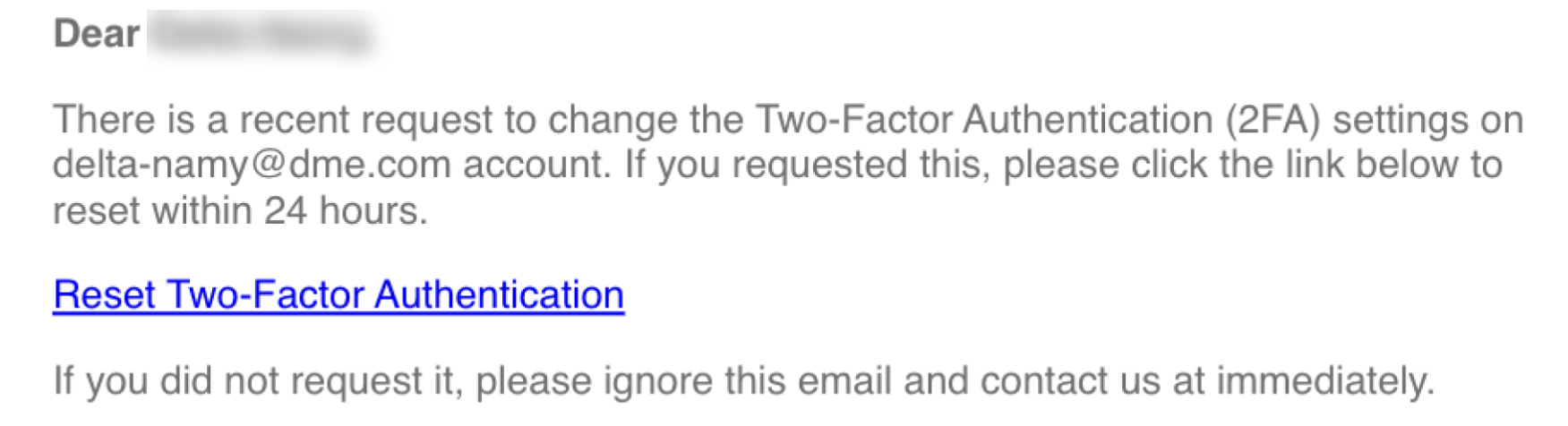 Der Benutzer erhält eine Bestätigungs-E-Mail, in der er aufgefordert wird, die Multi-Faktor-Authentifizierung bei seiner nächsten Anmeldung erneut einzurichten.