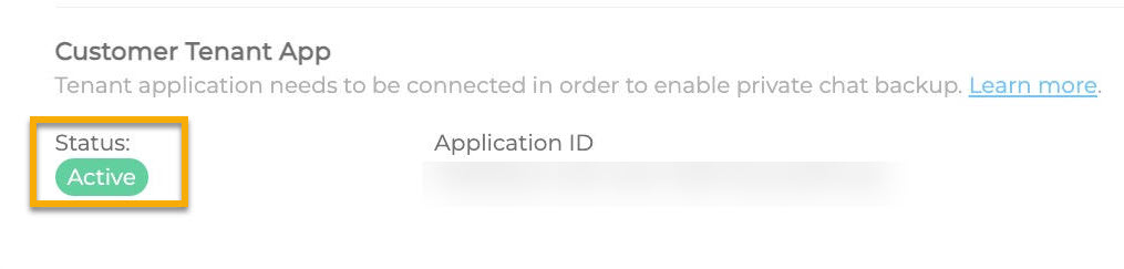 Sobald die Einrichtung erfolgreich abgeschlossen ist, wird das Formular nicht mehr angezeigt und ein Status: Die Meldung Active wird angezeigt.