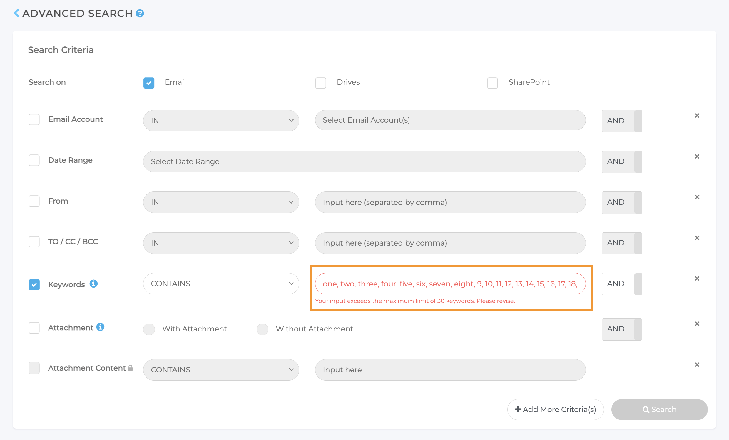 Die Suchkriterien für Anhänge stehen nur Benutzern mit dem Archiver-Tarif zur Verfügung.
