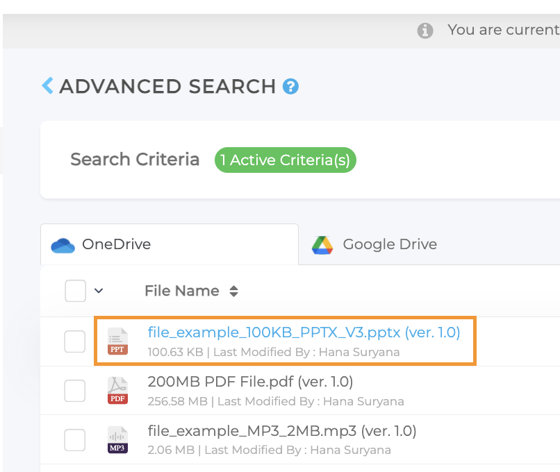 Die Inhaltssuche funktioniert für gängige Dateitypen, darunter PDF-, DOCX-, PPTX-, XLSX- und TXT-Dateien
