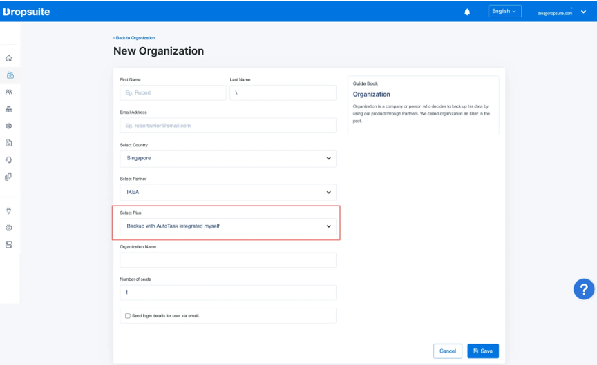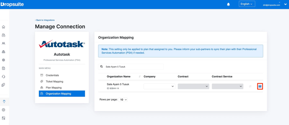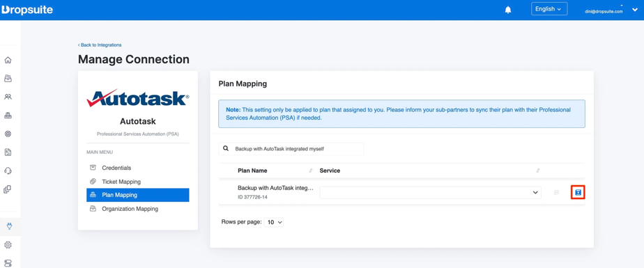 - Verbindung zu Autotask im Dropsuite Partner Portal