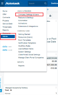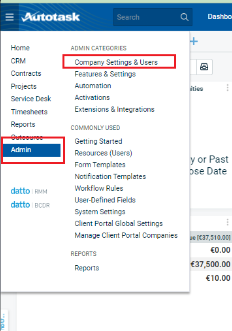 - Navigieren Sie zu Admin, dann Firmeneinstellungen & Benutzer.