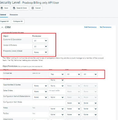 - Legen Sie die Berechtigungen für den API-Benutzer wie folgt fest