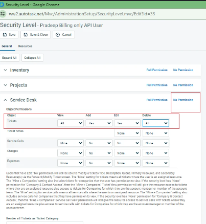 - Einrichten einer neuen Sicherheitsrolle in Autotask