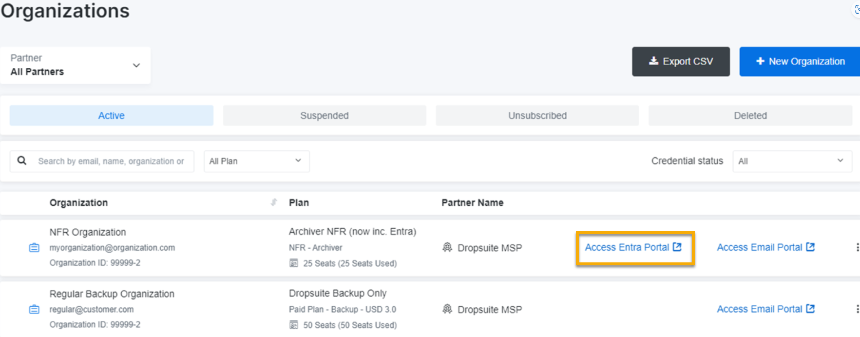 Nachdem Sie den Entra-Plan erstellt haben, können Sie eine neue Organisation mit diesem Plan erstellen.