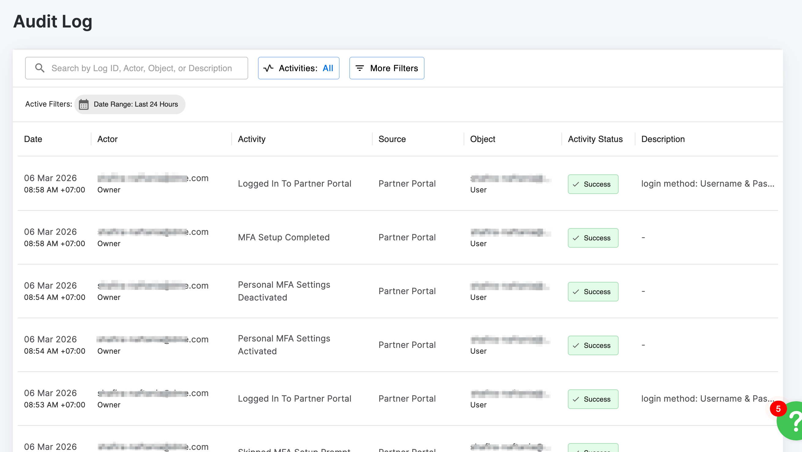 Partner Portal Audit Log