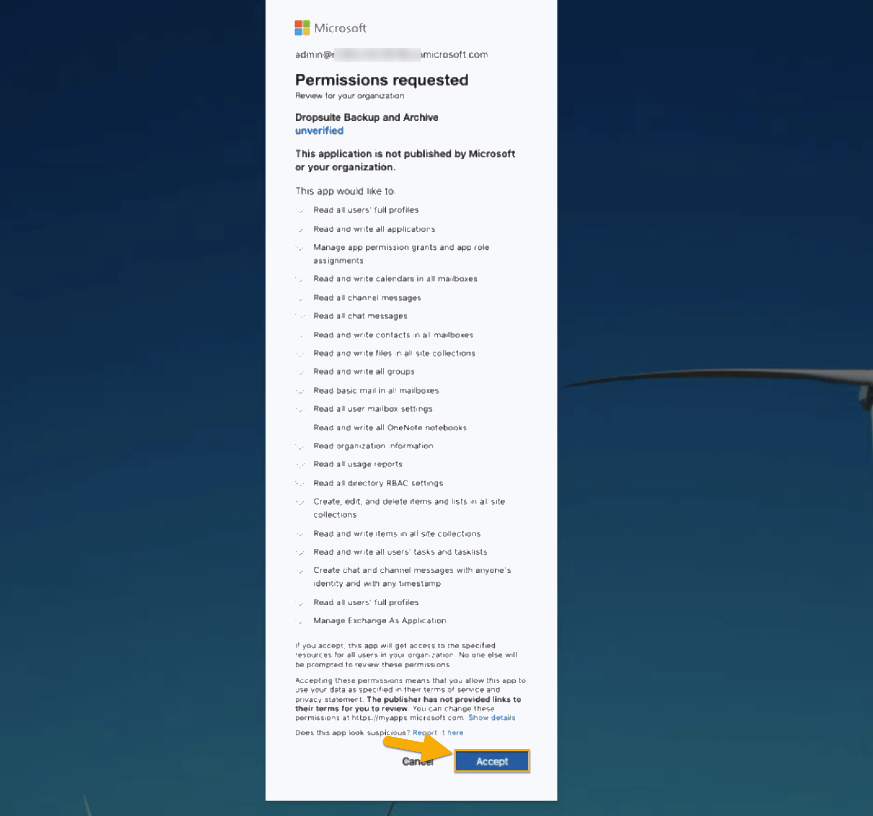 - Dropsuite redirects you to the Microsoft landing page. Log in with your correct administrator account.